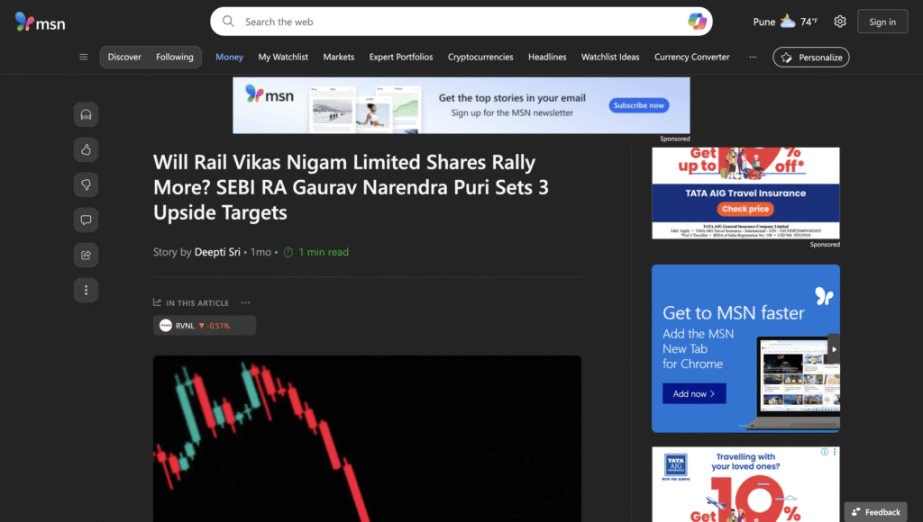 Date: 22/05/2025 Will Rail Vikas Nigam Limited Shares Rally More? SEBI RA Gaurav Narendra Puri Sets 3 Upside Targets