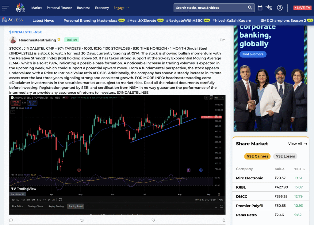 Jindal Steel (JINDALSTEL) is a stock to watch for next 30 Days, currently trading at ₹974. The stock is showing bullish momentum with the Relative Strength Index (RSI) holding above 50. It has taken strong support at the 20-day Exponential Moving Average (EMA), which is also at ₹974, indicating a possible base formation. A noticeable increase in trading volumes is expected in the upcoming week, which could support a potential upward move. From a fundamental perspective, the stock appears undervalued with a Price to Intrinsic Value ratio of 0.626. Additionally, the company has shown a steady increase in its total assets over the last three years, signaling strong and consistent growth.